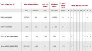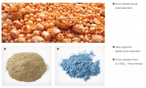 Our dynamic air classifiers solve even the most difficult separation tasks between 3 to 300 m, with sharp top cut and close particle size distributions. We remove the coarse particles from special effect pigments or the fines from metals and ceramic pigments. High-purity materials are separated using polymer-based or ceramic parts and machinery lining.